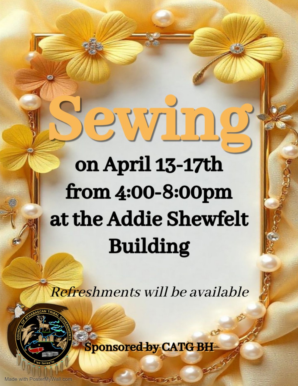 Sewing on April 13 - 17th from 4:00 - 8:00PM at the Addie Shewfelt Building